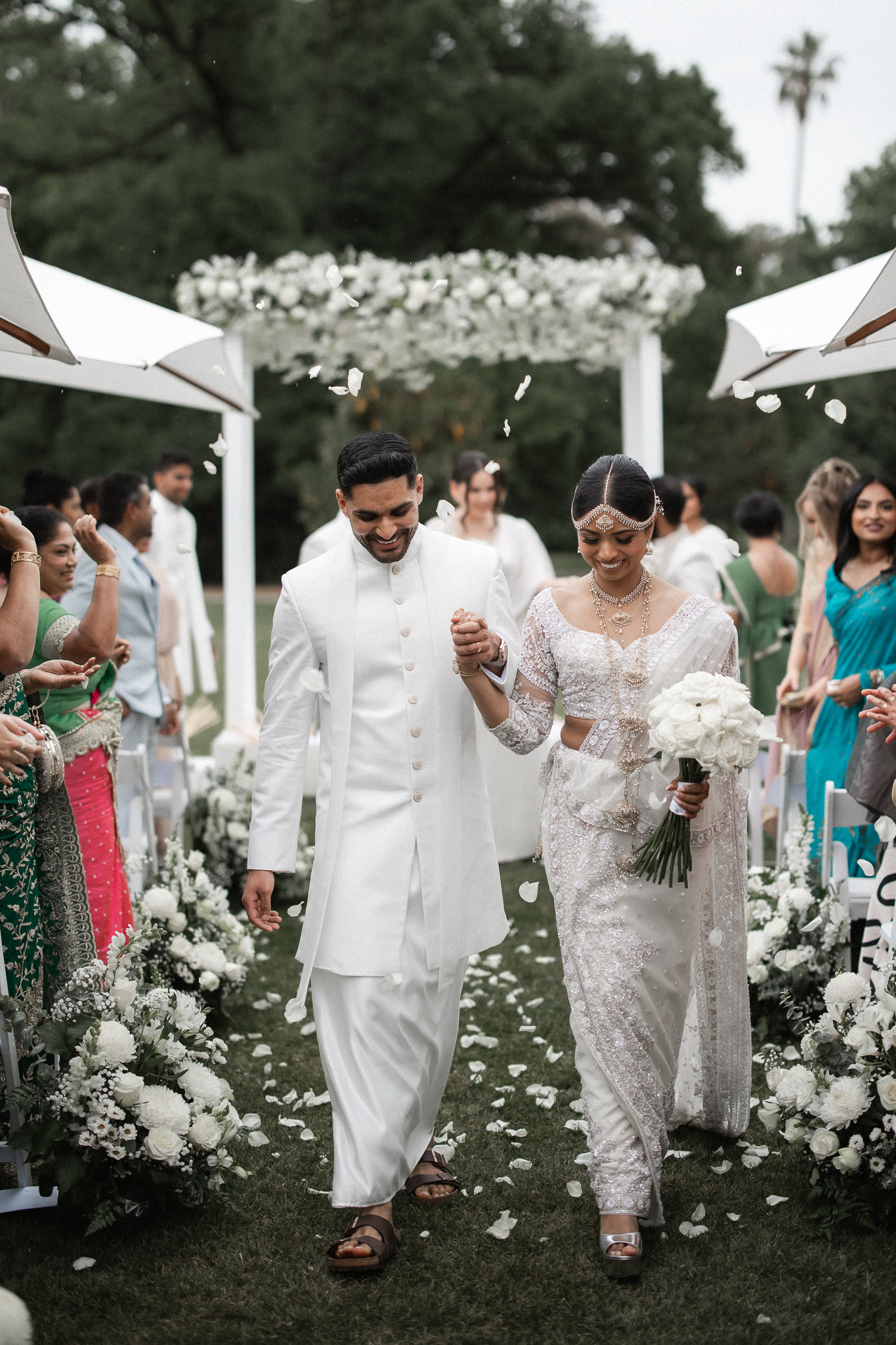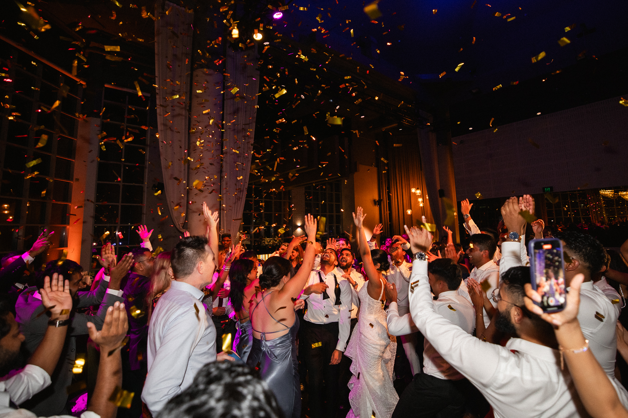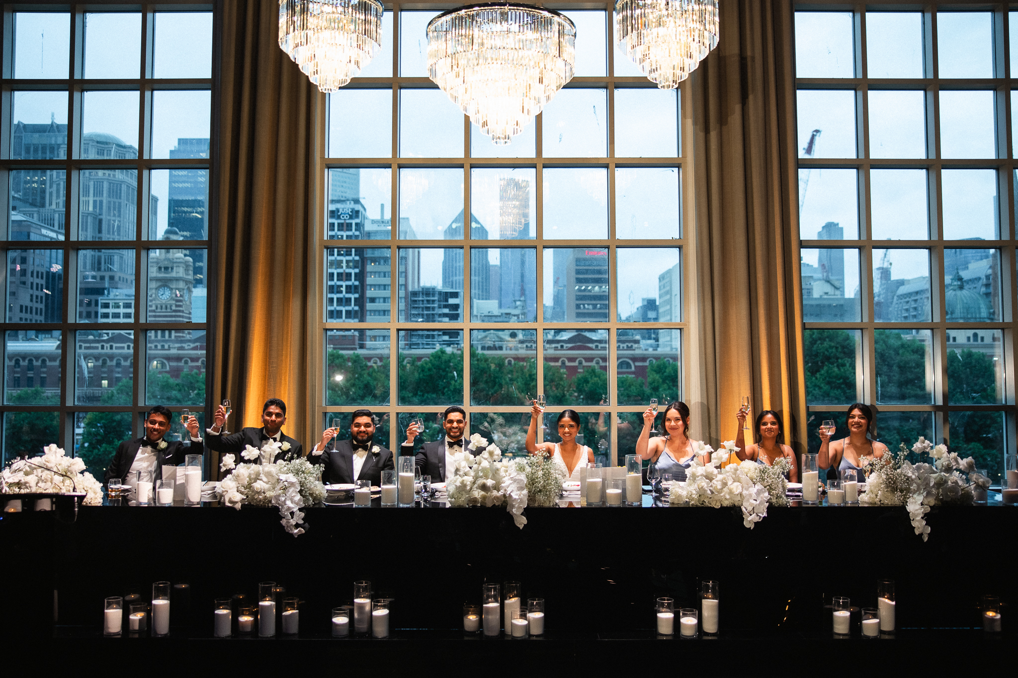 Dilnesha and Sas’s wedding was the perfect blend of elegance, culture, and celebration. They began their day with a beautiful Sri Lankan Poruwa ceremony set on the lush green grounds of Ripponlea Estate, a serene, storybook backdrop for such a meaningful moment. We had the chance to explore the estate and capture some editorial-style portraits both around the gardens and inside the historic mansion before heading into the city. Their reception, at the stunning Metropolis Events brought the energy, the views, and one unforgettable surprise — a confetti explosion on the dance floor that marked the perfect end to the night!