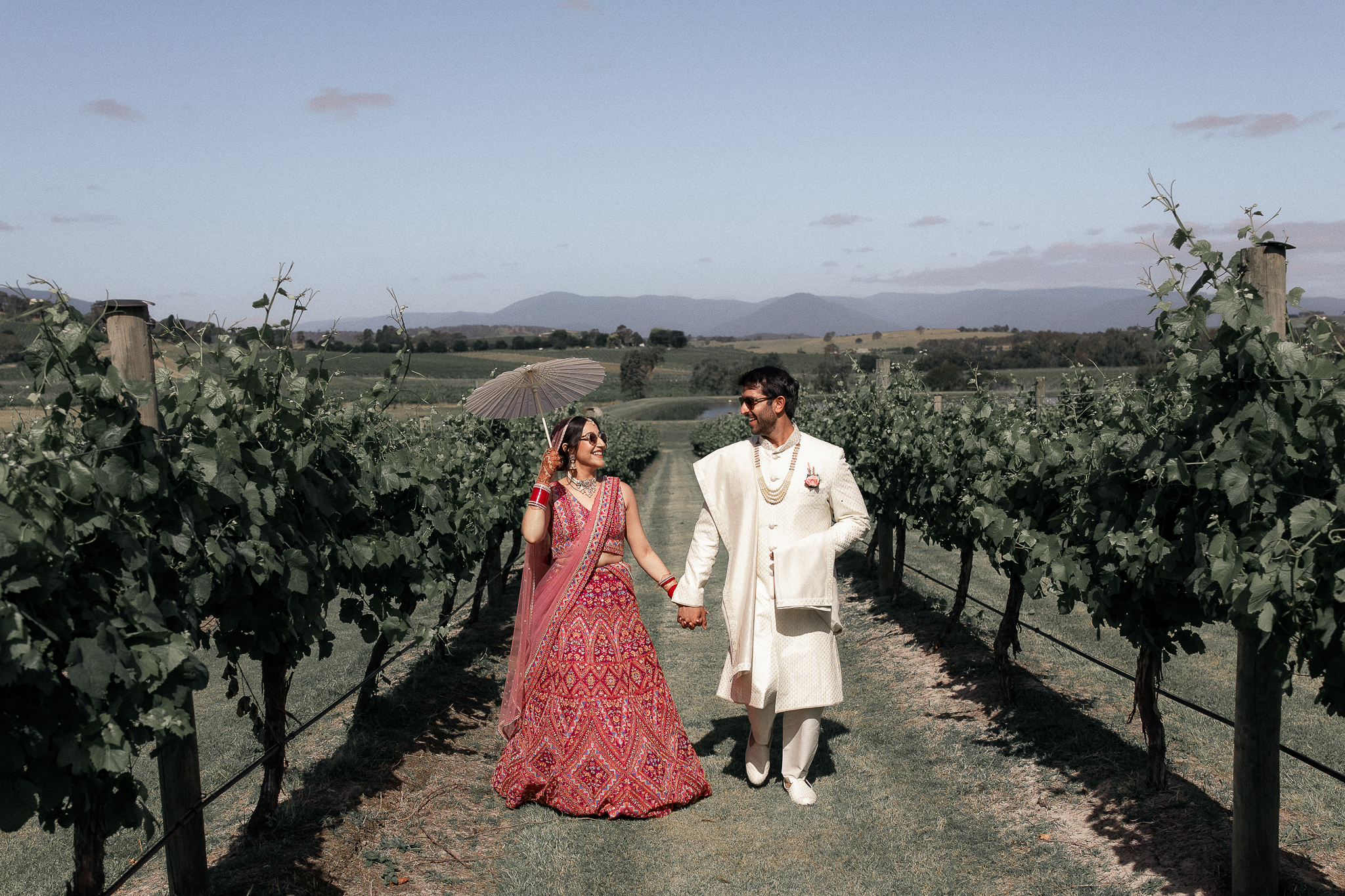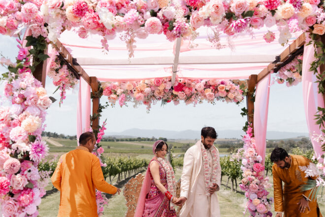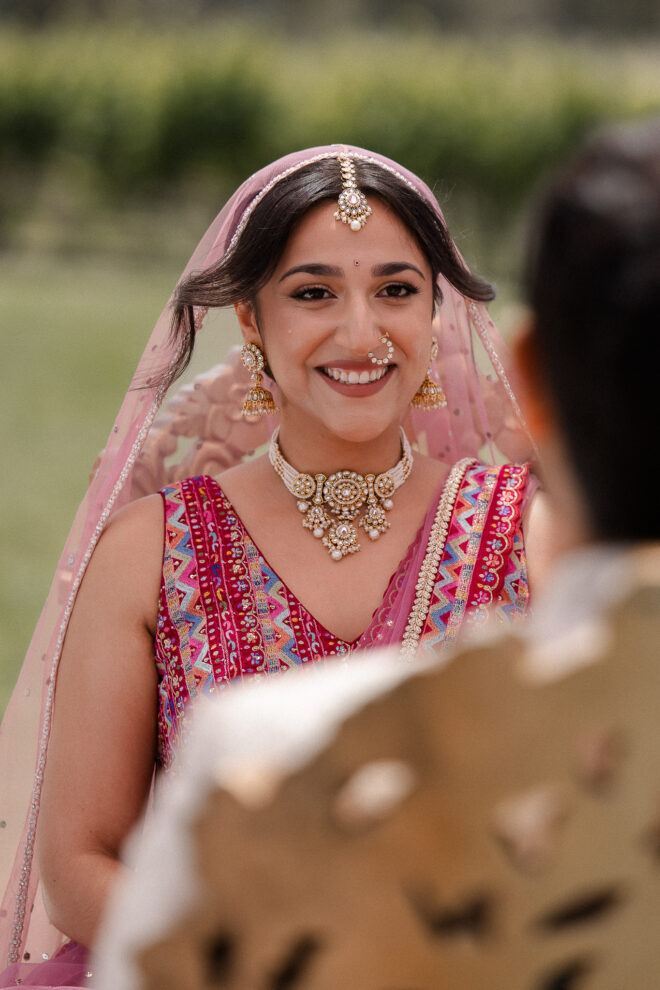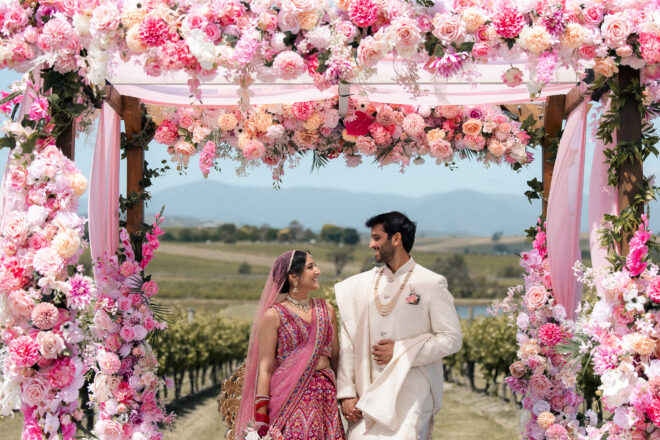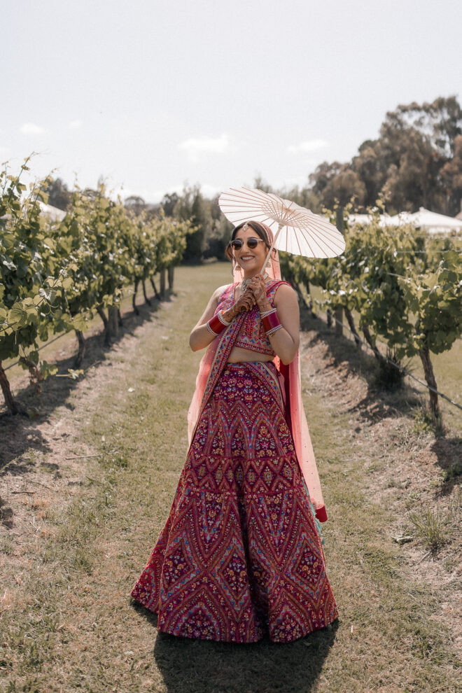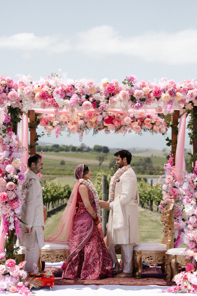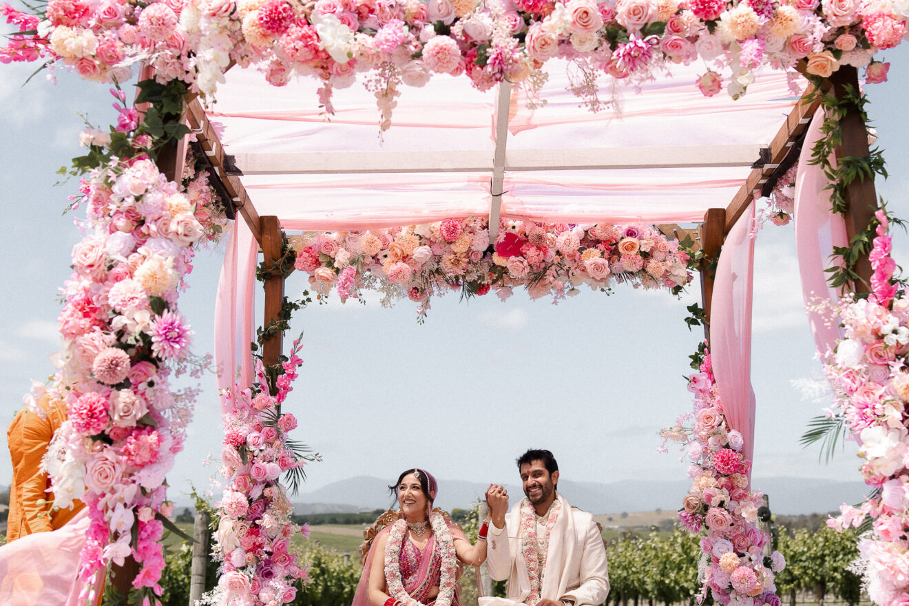 Set against the rolling vineyards of Acacia Ridge, Reetika and Karan’s wedding was nothing short of magical. After capturing their vibrant Sangeet and Mehndi night their wedding day brought a beautiful softness to the celebration, with a palette of whites and soft pinks woven throughout every detail.