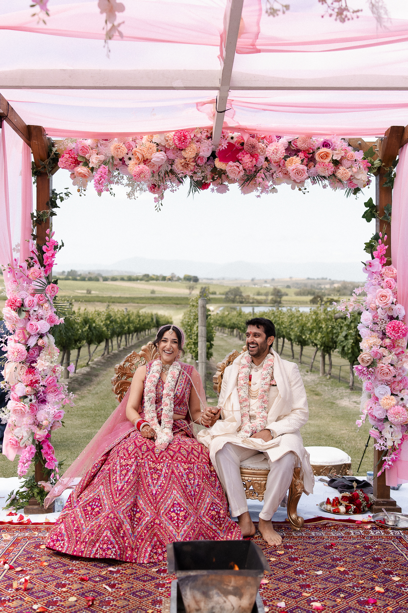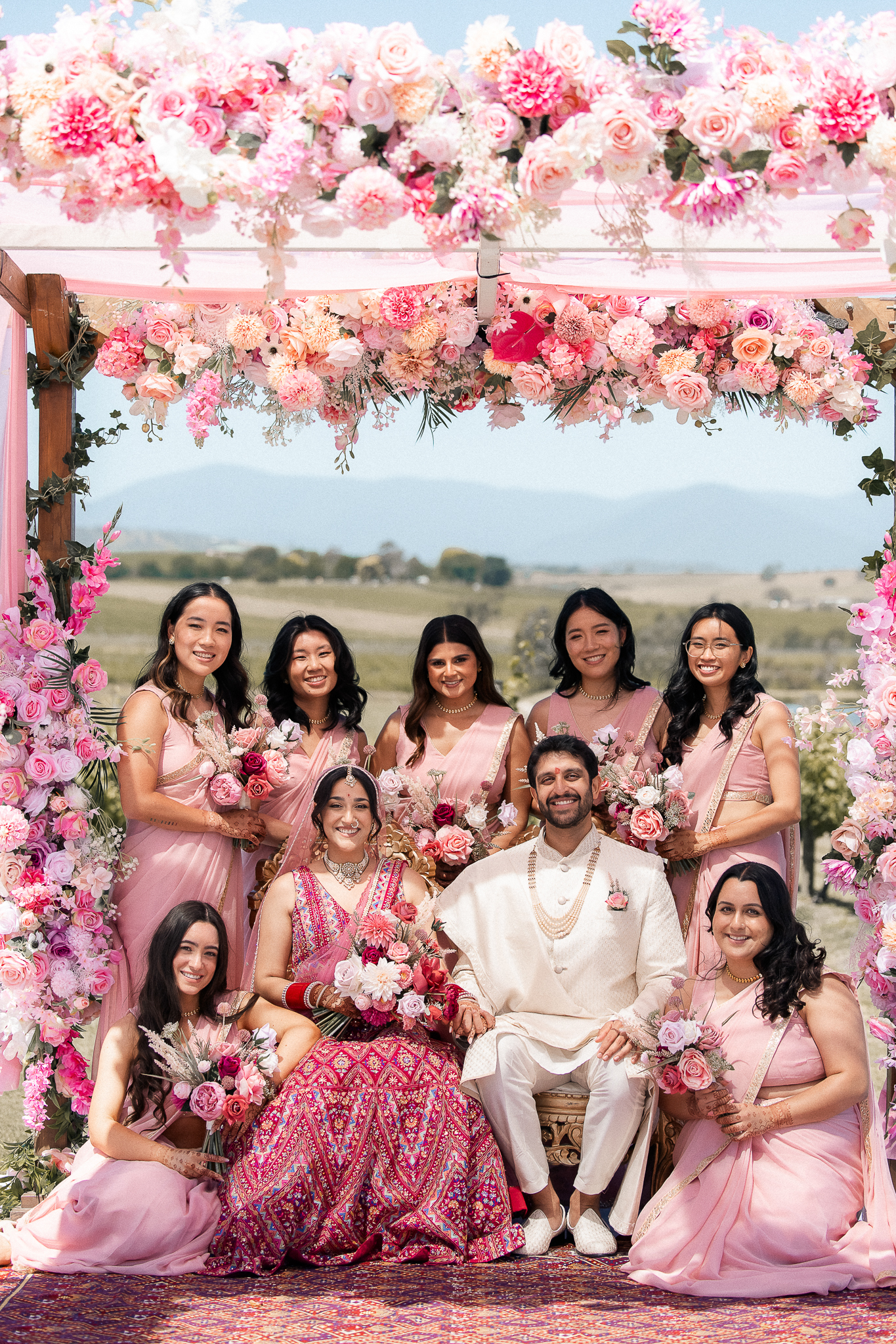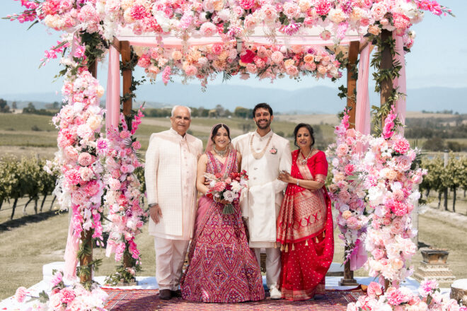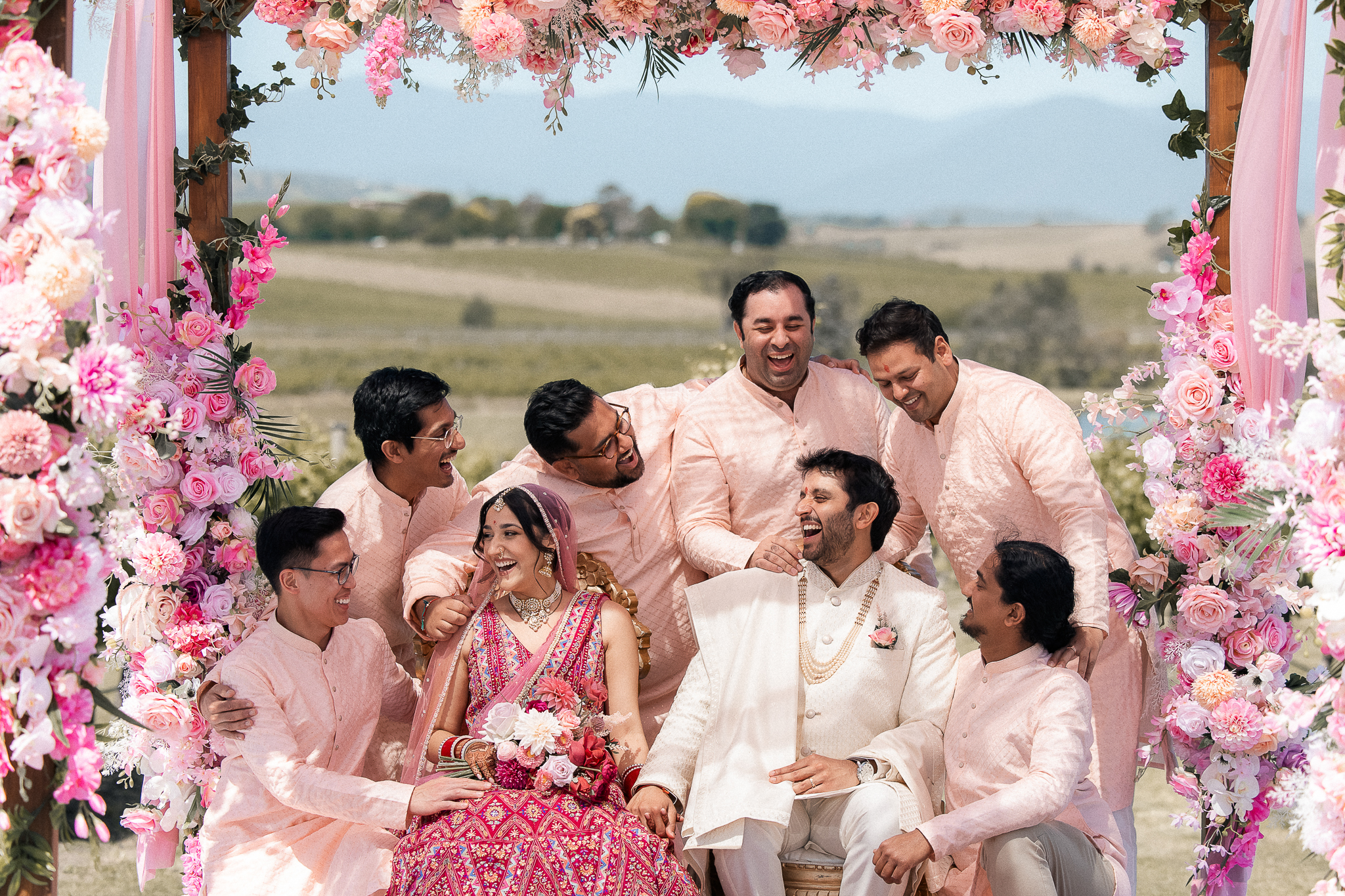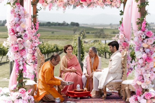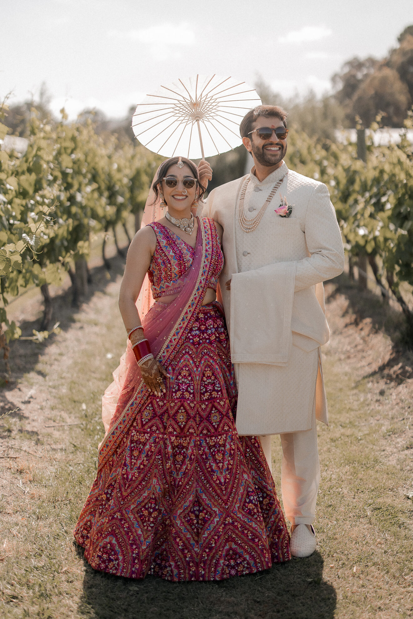 Set against the rolling vineyards of Acacia Ridge, Reetika and Karan’s wedding was nothing short of magical. After capturing their vibrant Sangeet and Mehndi night their wedding day brought a beautiful softness to the celebration, with a palette of whites and soft pinks woven throughout every detail.
