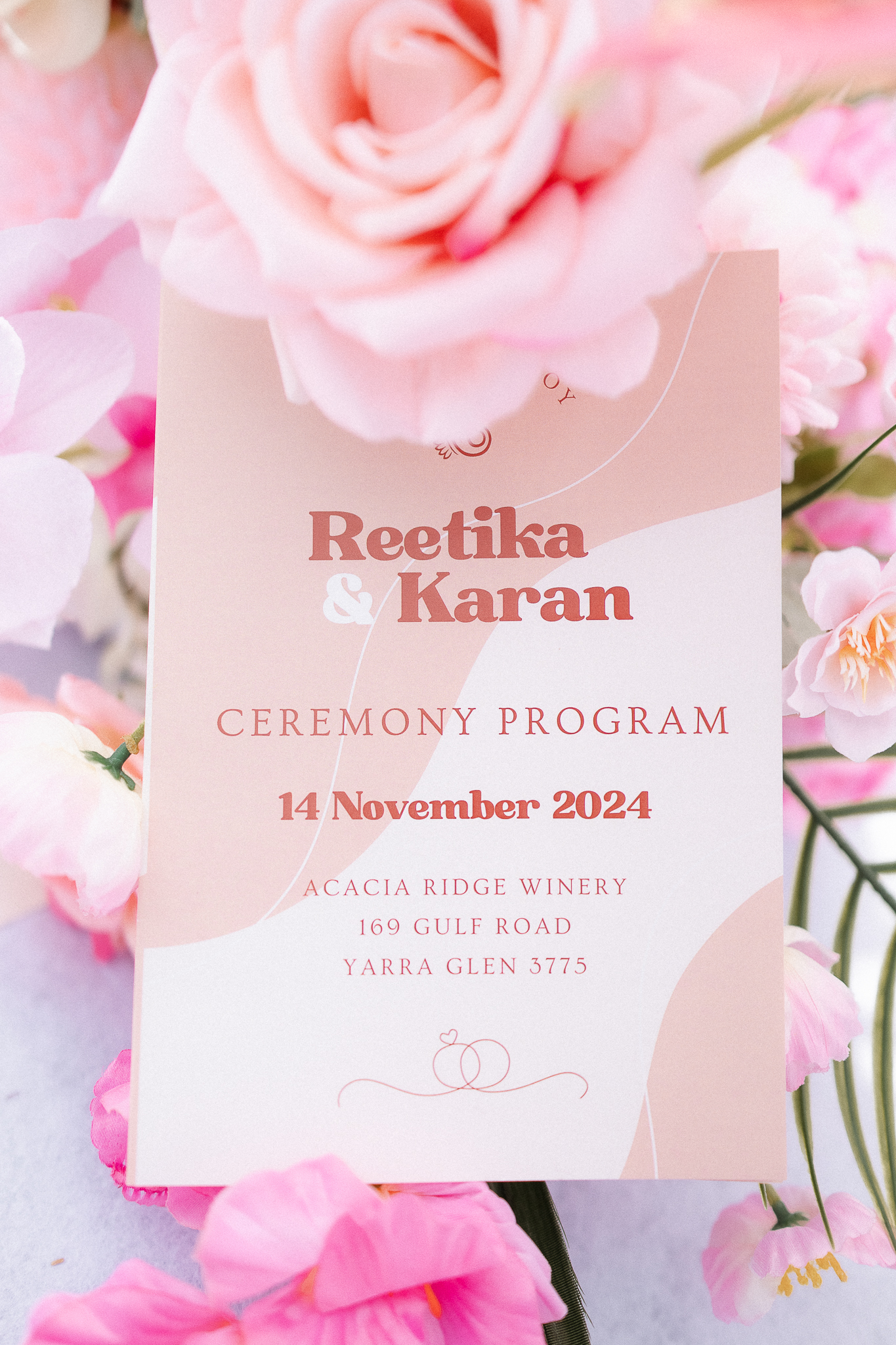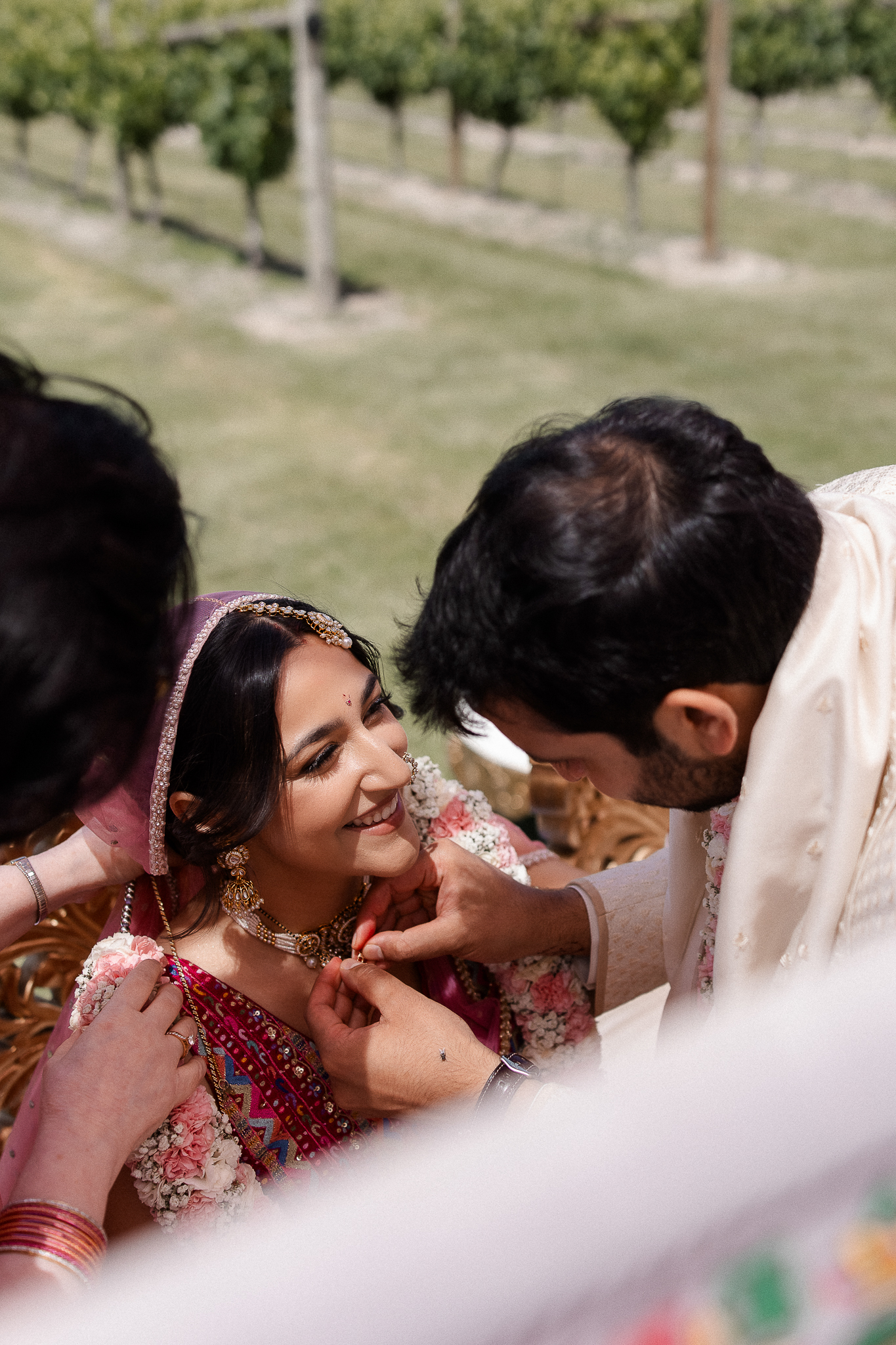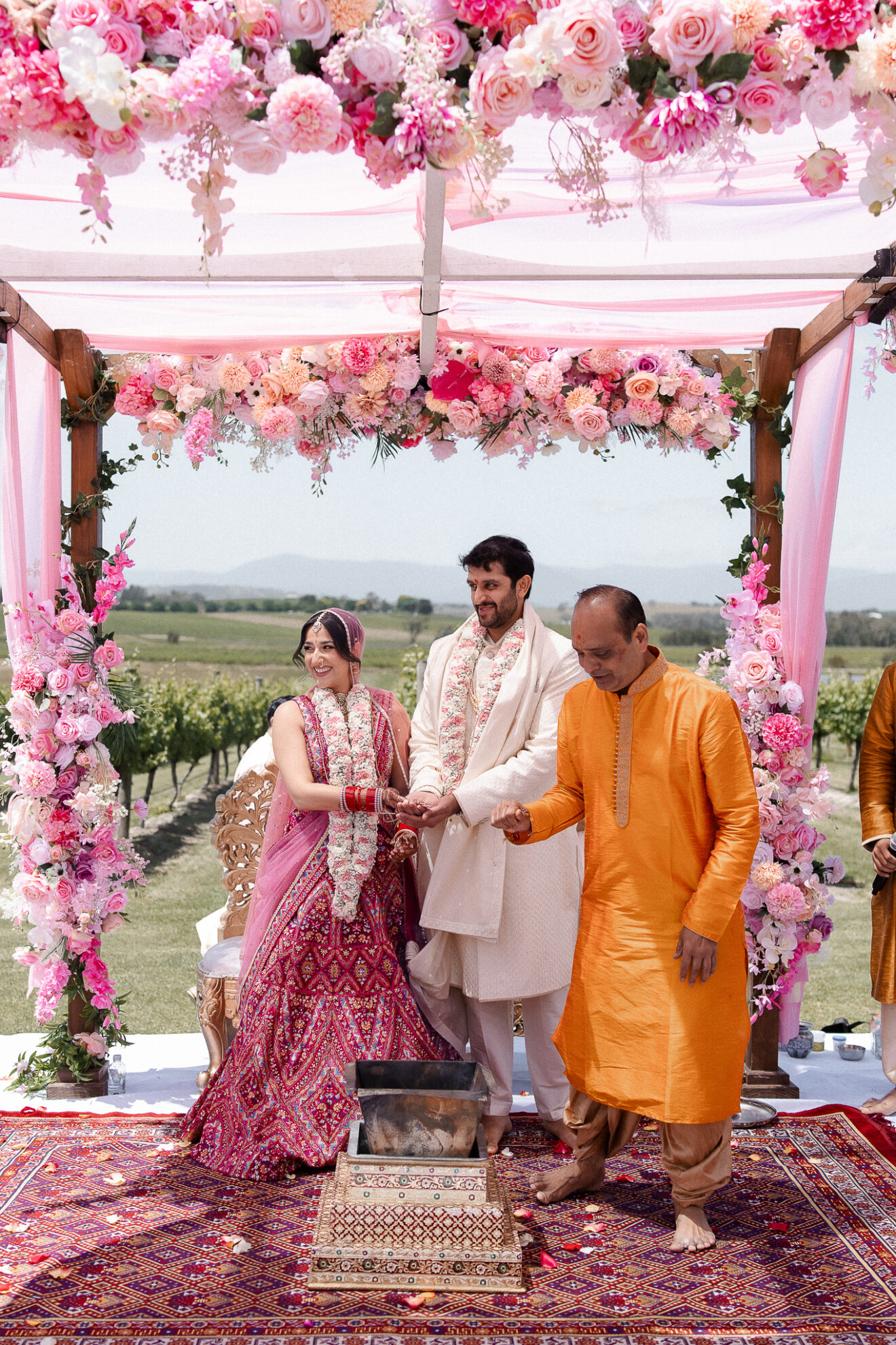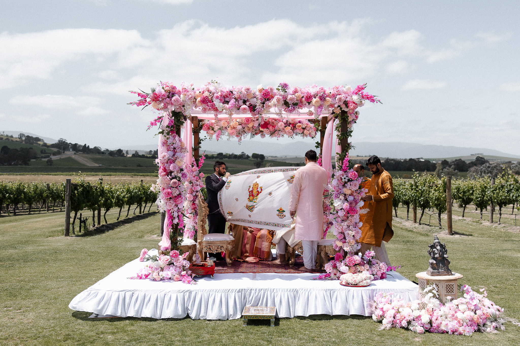 Set against the rolling vineyards of Acacia Ridge, Reetika and Karan’s wedding was nothing short of magical. After capturing their vibrant Sangeet and Mehndi night their wedding day brought a beautiful softness to the celebration, with a palette of whites and soft pinks woven throughout every detail.