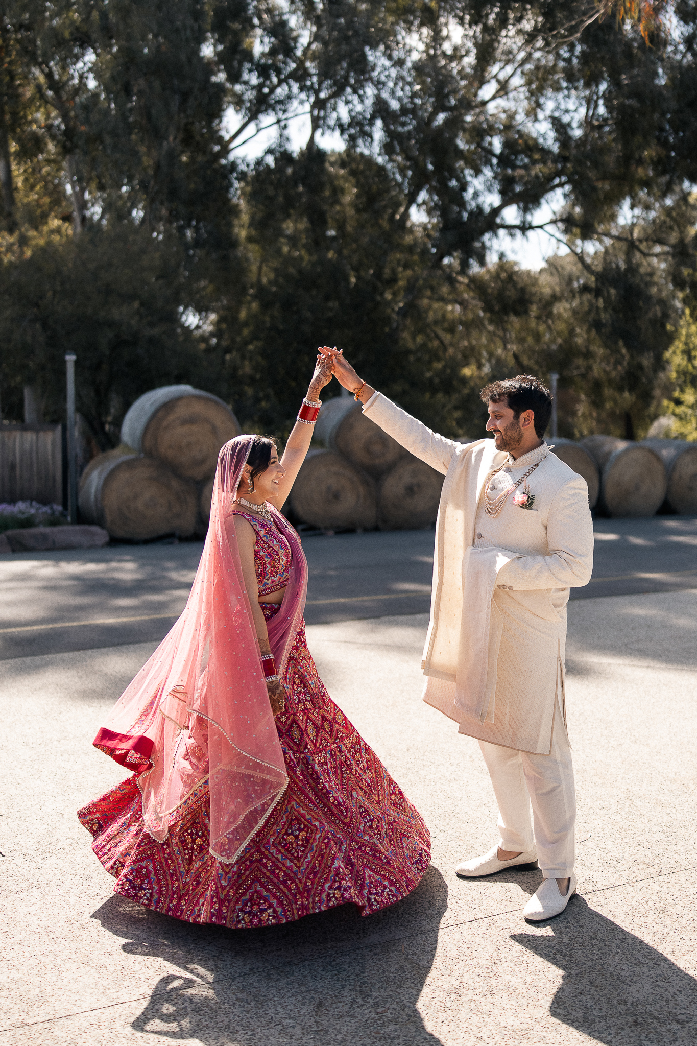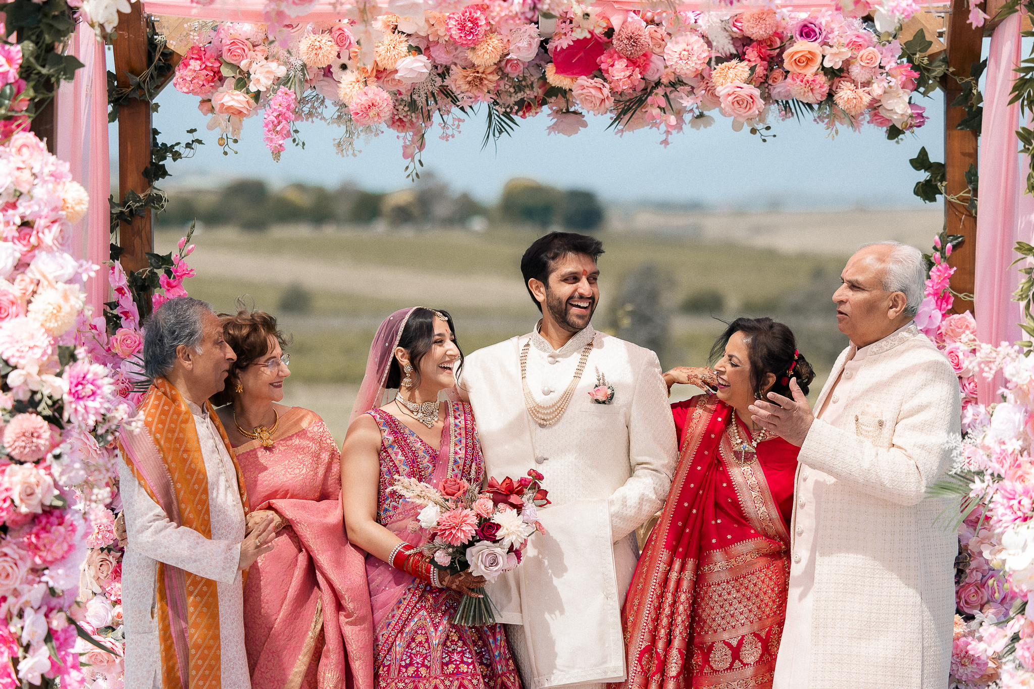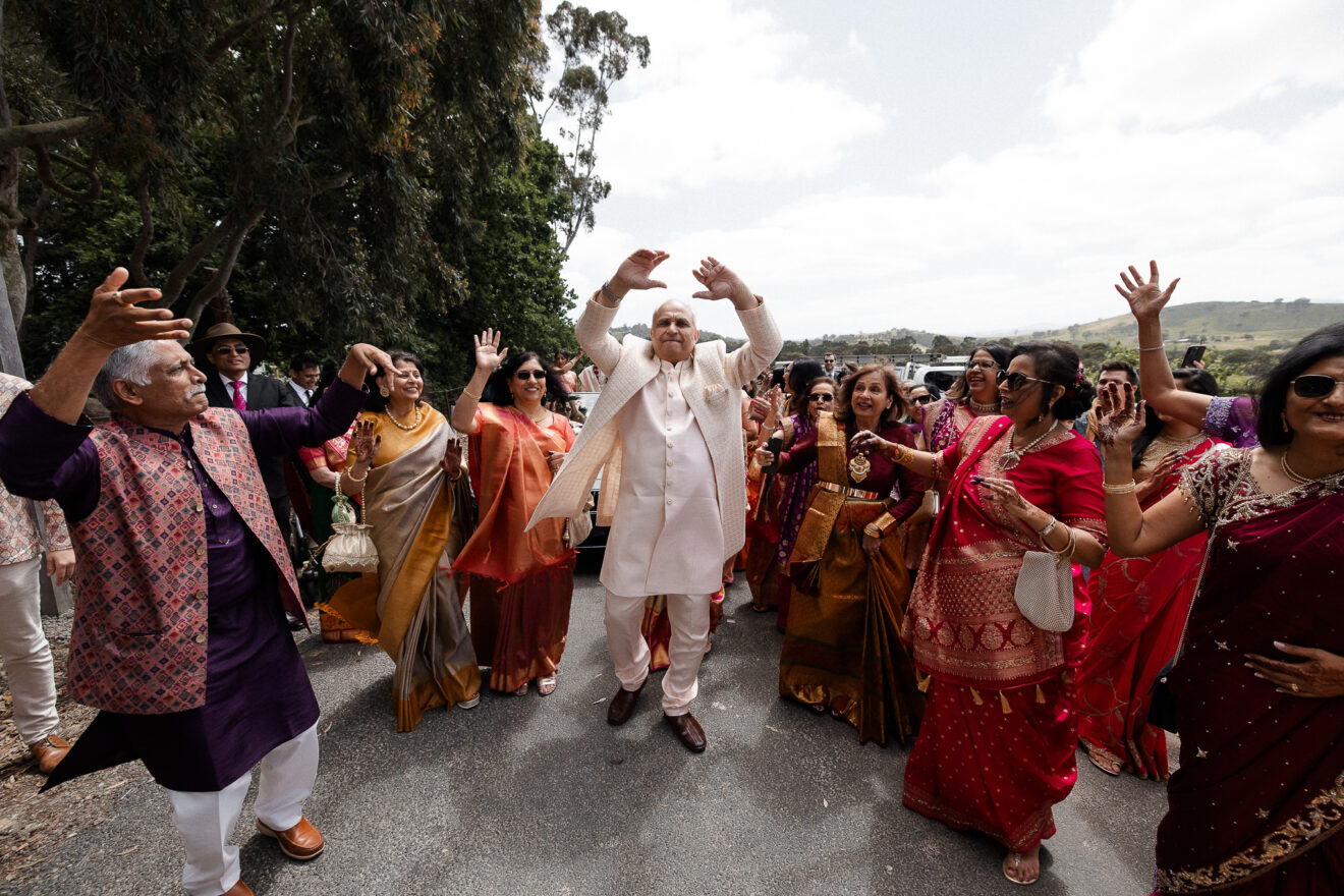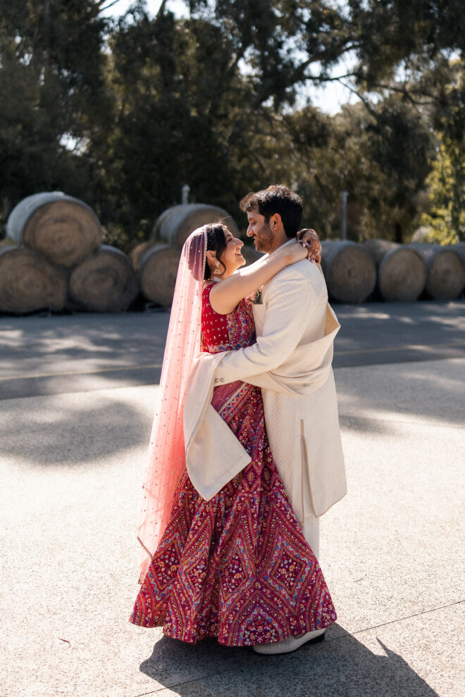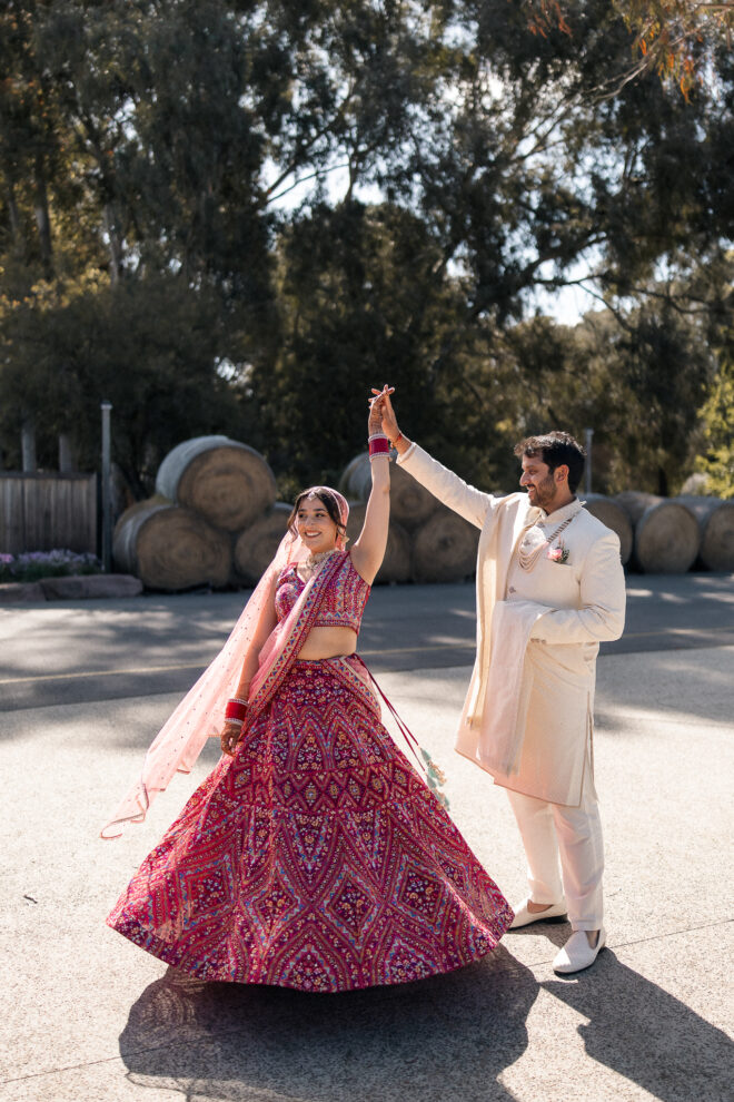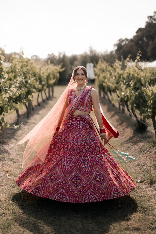 The outdoor mandap, framed by Acacia Ridge’s breathtaking winery backdrop, was a vision. Among the many unforgettable moments, one that stood out was the quiet emotion as Reetika saw Karan for the first time – a single tear, perfectly still, that said more than words ever could.