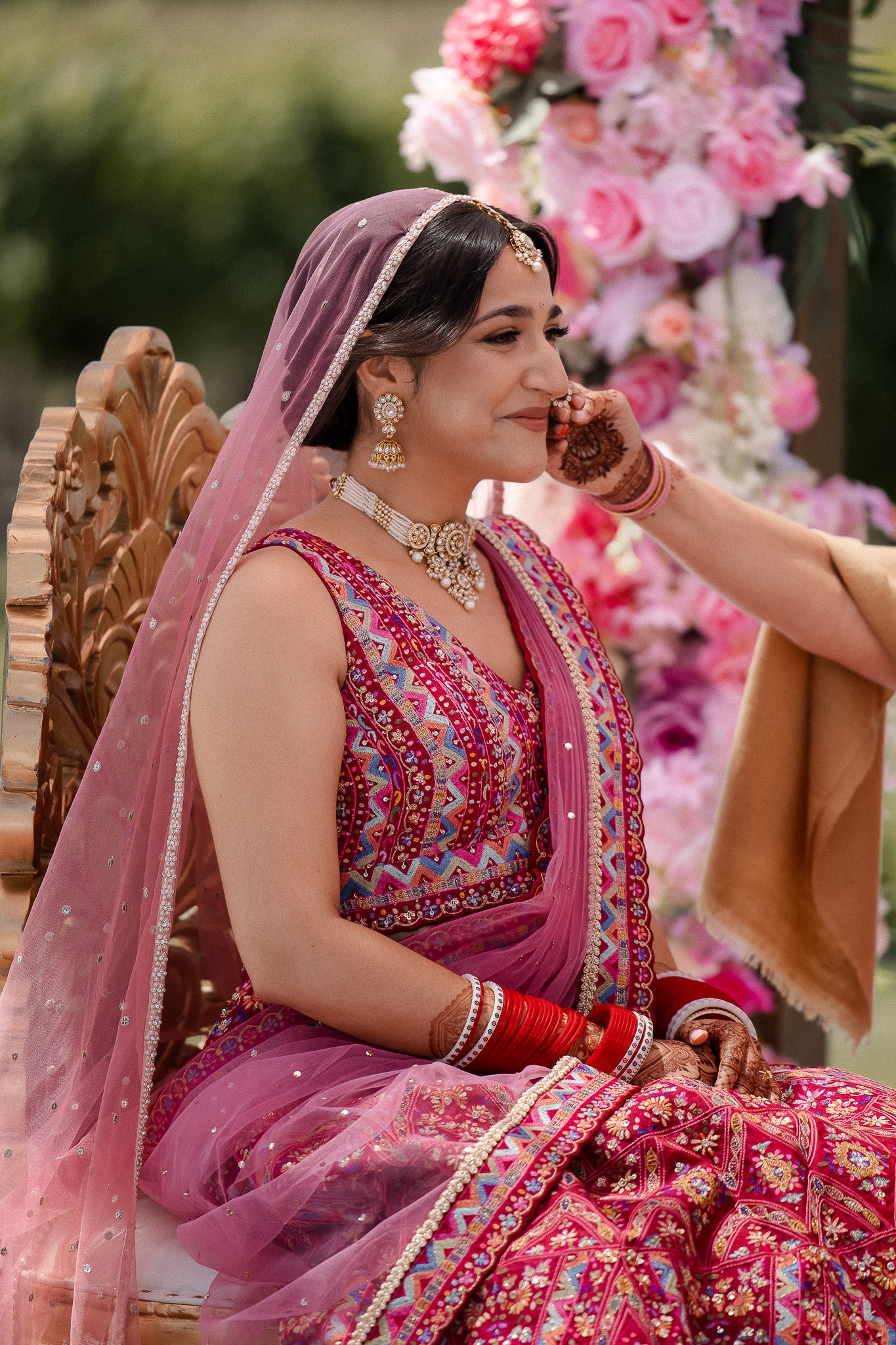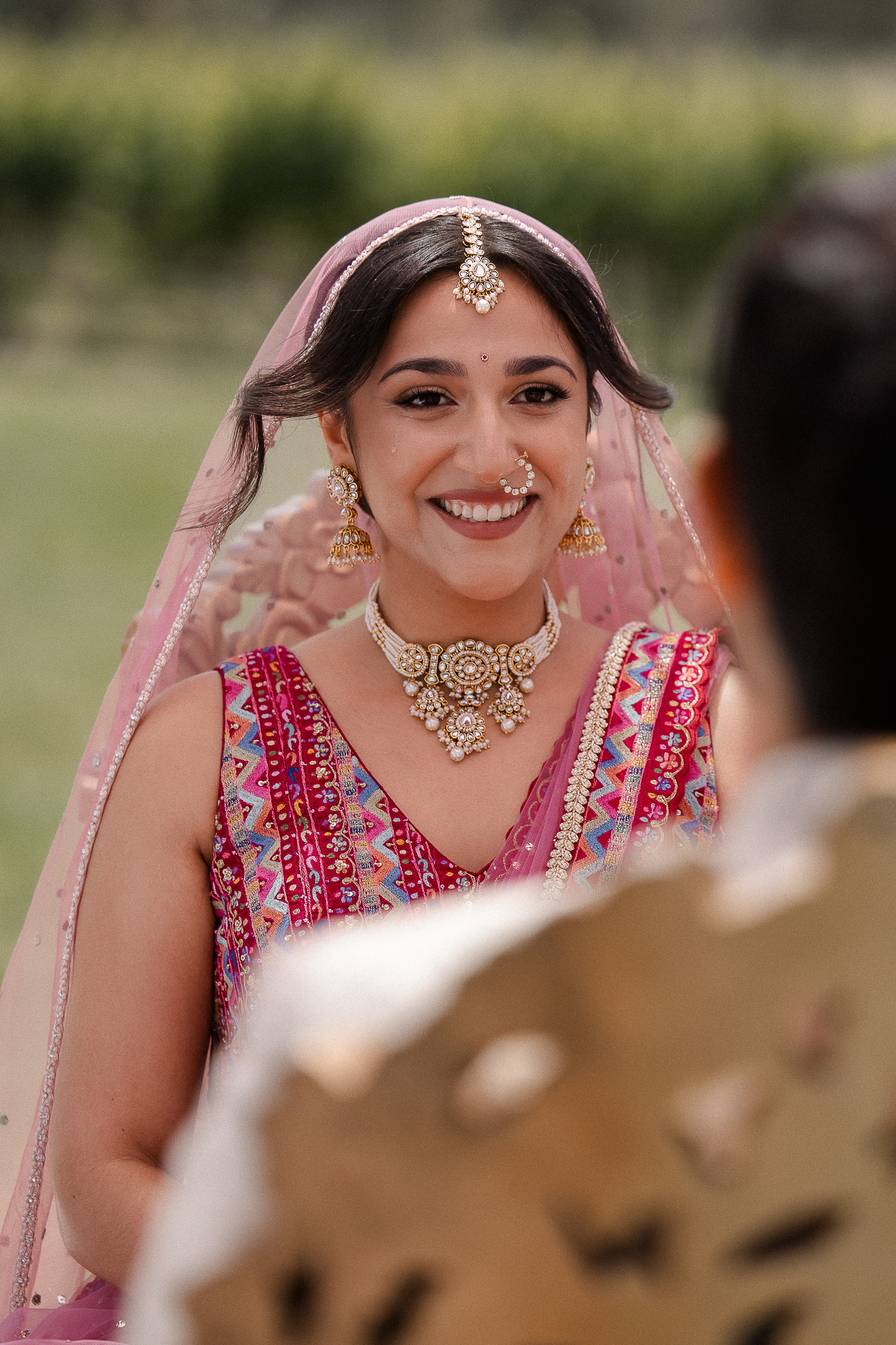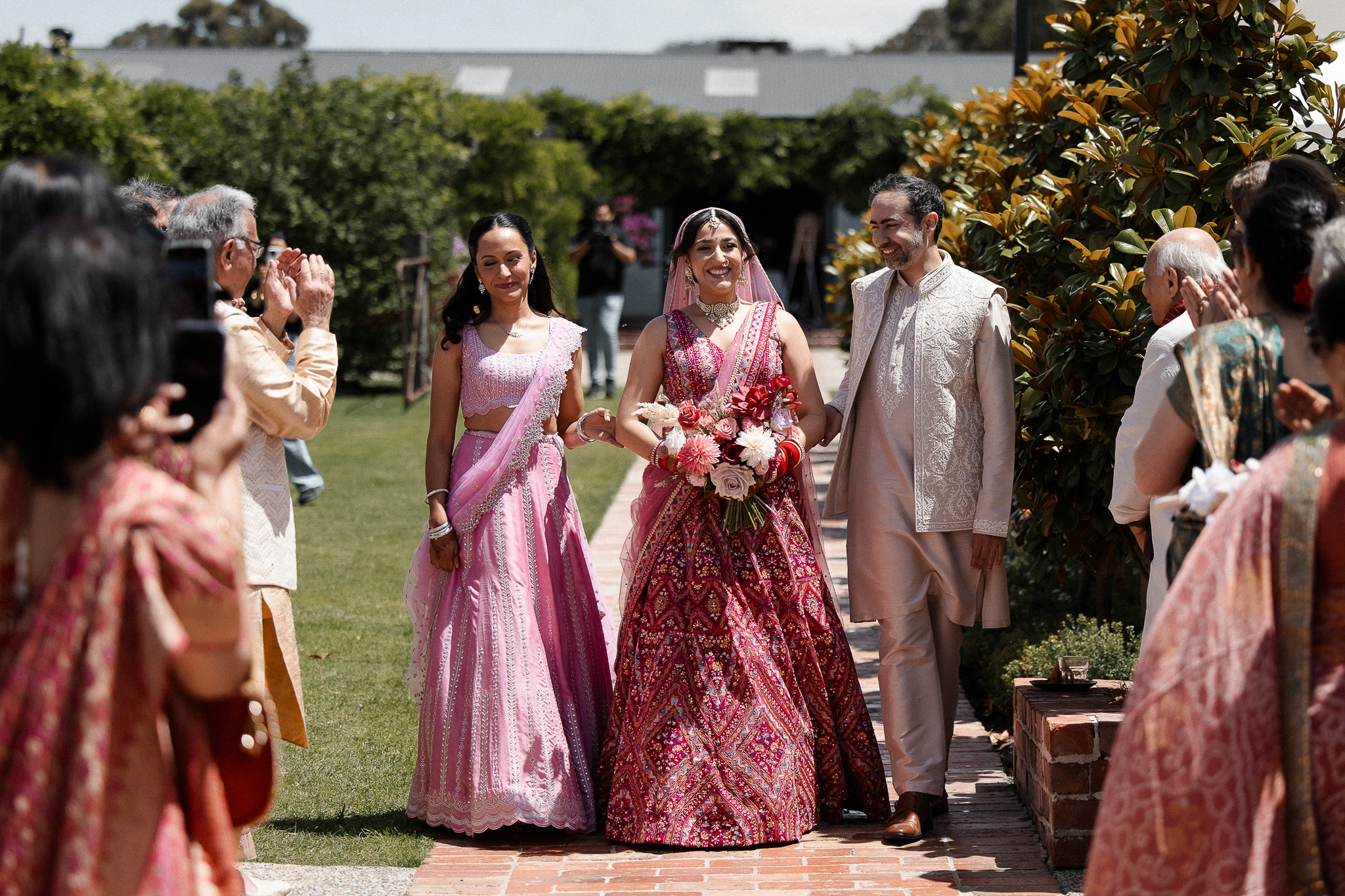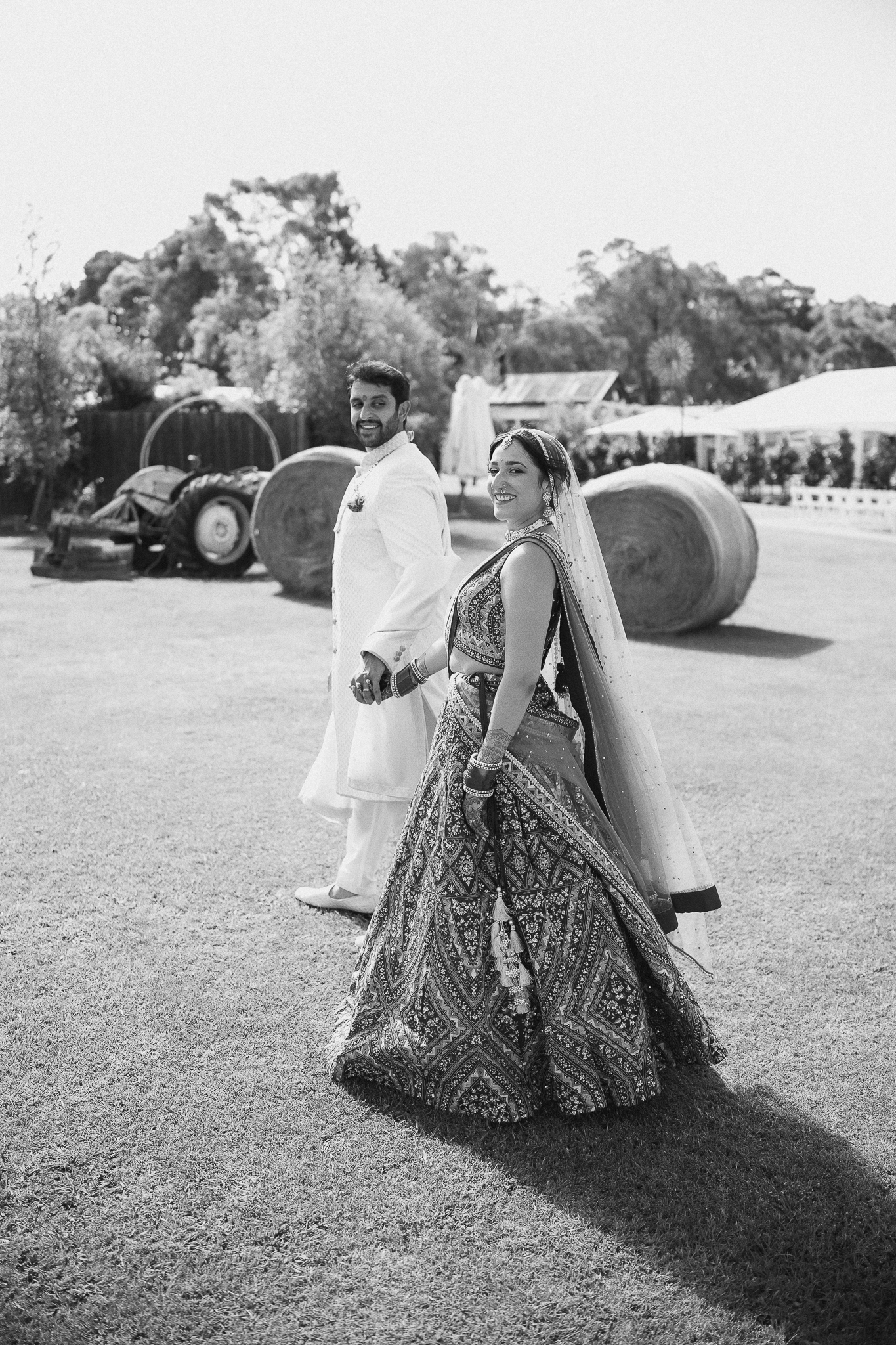 The outdoor mandap, framed by Acacia Ridge’s breathtaking winery backdrop, was a vision. Among the many unforgettable moments, one that stood out was the quiet emotion as Reetika saw Karan for the first time – a single tear, perfectly still, that said more than words ever could.